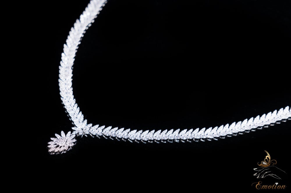 طقم ايموشن فاخر مطلي ذهب أبيض ومُطعَّم بفصوص ألماس صناعي سويسري "زركون"