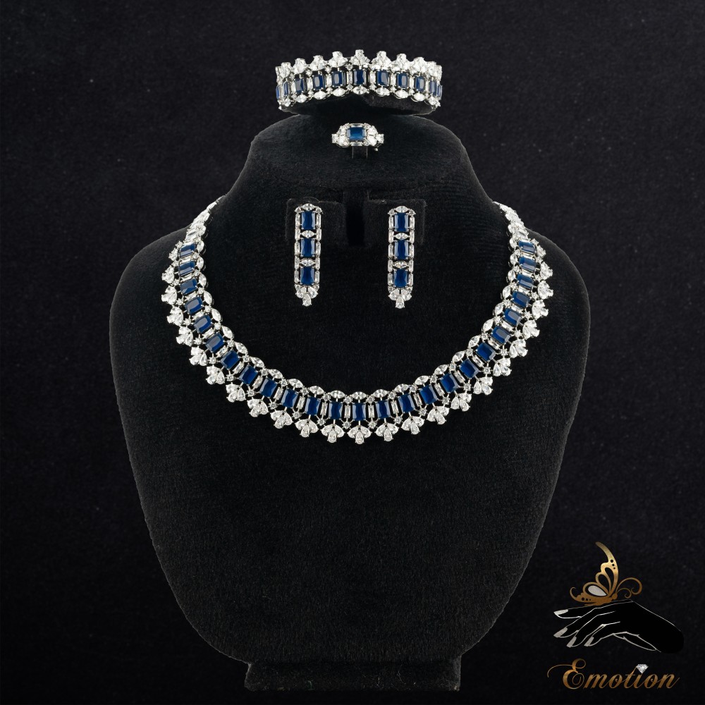 - طقم ايموشن فاخر مطلي ذهب أبيض مُطعَّم بفصوص ألماس صناعي سويسري "زركون"