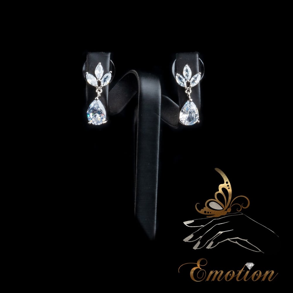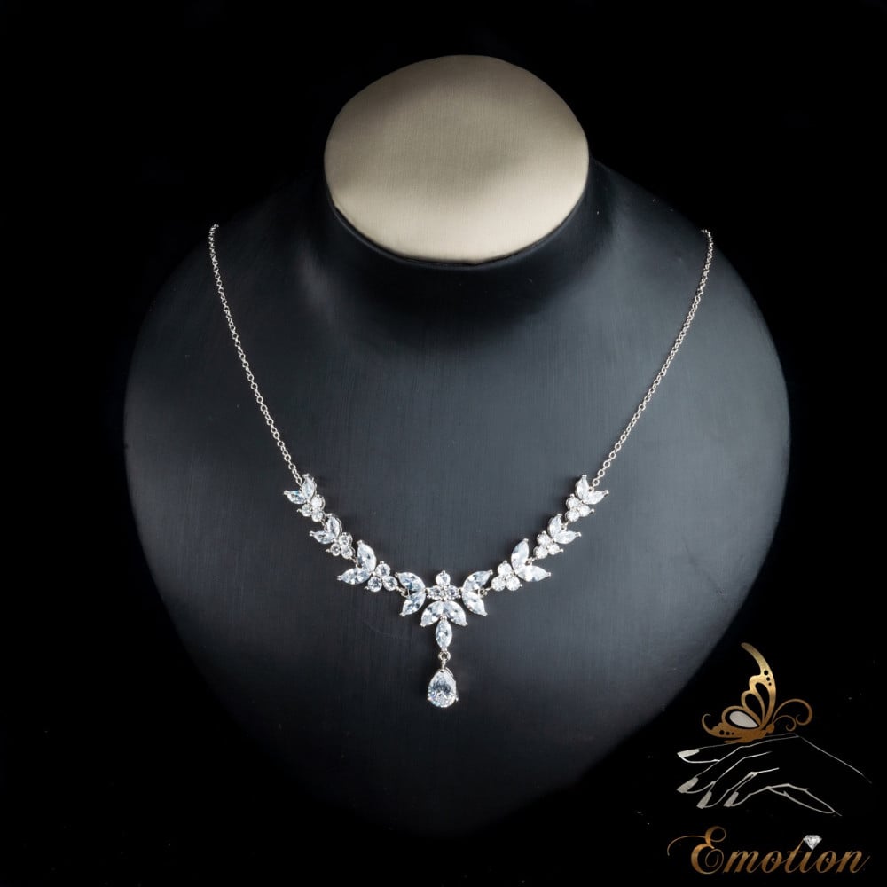 طقم فاخر مطلي ذهب أبيض مُطعَّم بفصوص ألماس صناعي سويسري "زركون"