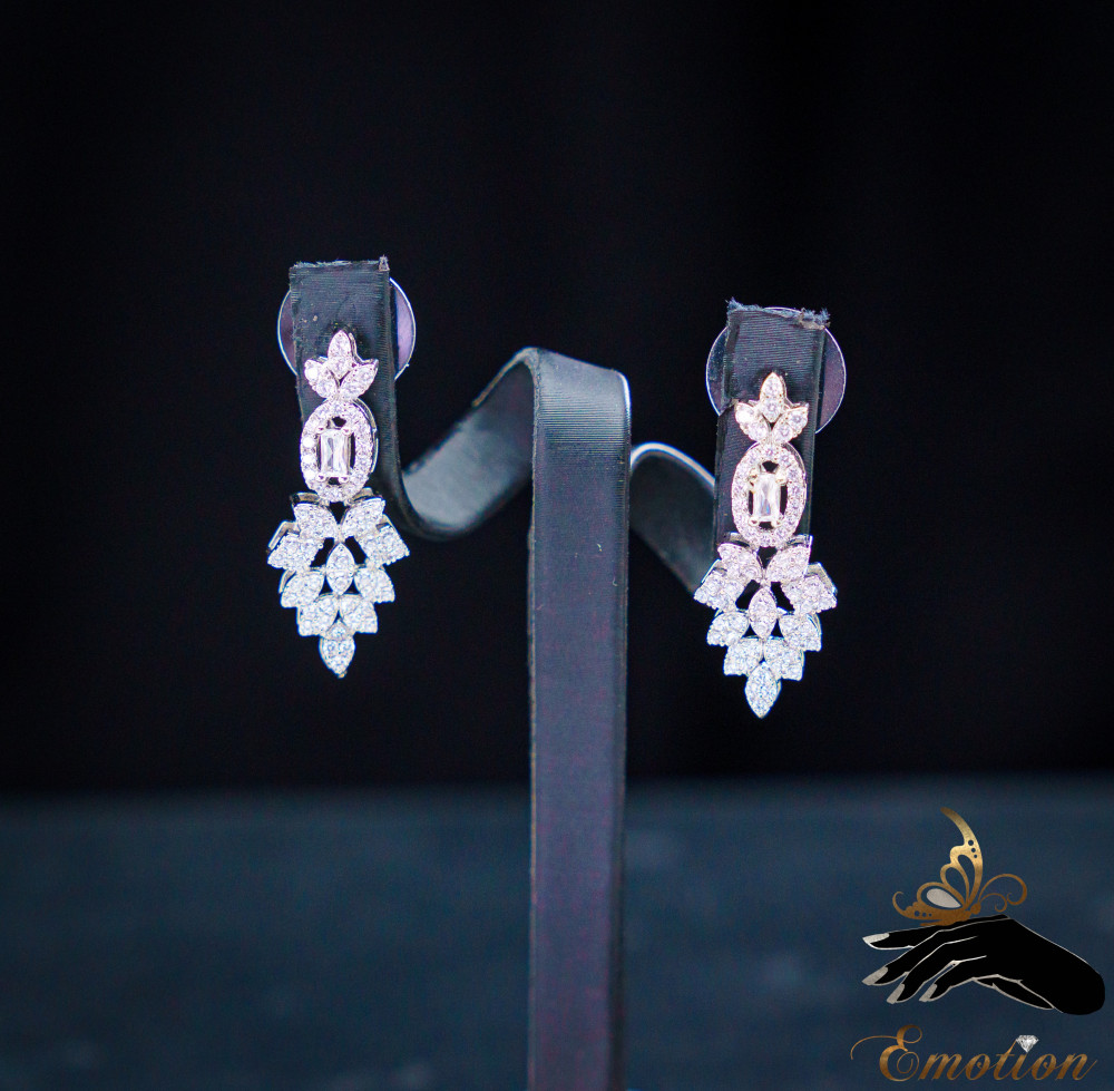 طقم مطلي ذهب أبيض عيار 18 ومُطعَّم بفصوص ألماس صناعي سويسري "زركون"