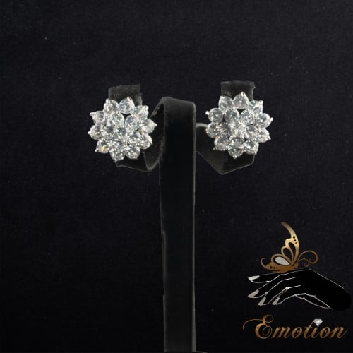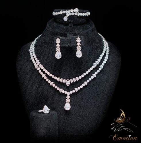 -  طقم فاخر مطلي ذهب أبيض مُطعَّم بفصوص ألماس صناعي سويسري "زركون"