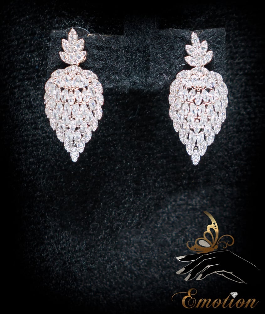 - طقم ايموشن فاخر مطلي ذهب أبيض مُطعَّم بفصوص ألماس صناعي سويسري "زركون"