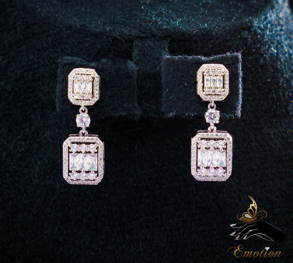 - طقم ايموشن فاخر مطلي ذهب أبيض مُطعَّم بفصوص ألماس صناعي سويسري "زركون"