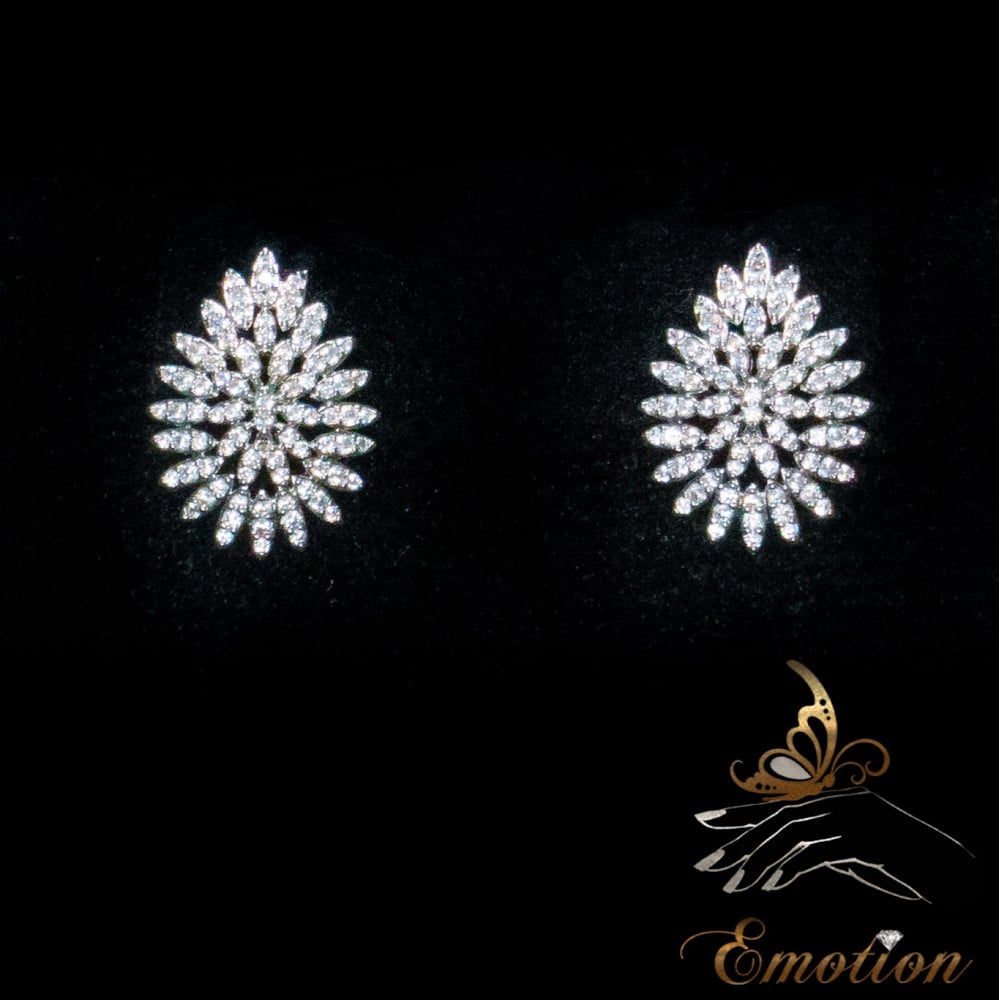 طقم ايموشن فاخر مطلي ذهب أبيض ومُطعَّم بفصوص ألماس صناعي سويسري "زركون"