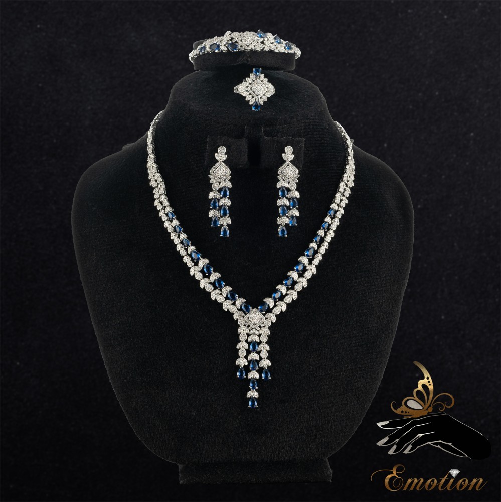 - طقم ايموشن فاخر مطلي ذهب أبيض مُطعَّم بفصوص ألماس صناعي سويسري "زركون"