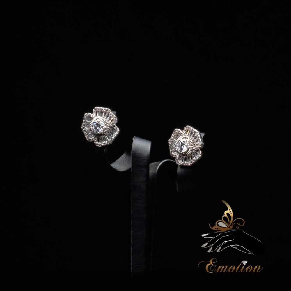 - طقم مطلي ذهب أبيض عيار 18 ومُطعَّم بفصوص ألماس صناعي سويسري "زركون"