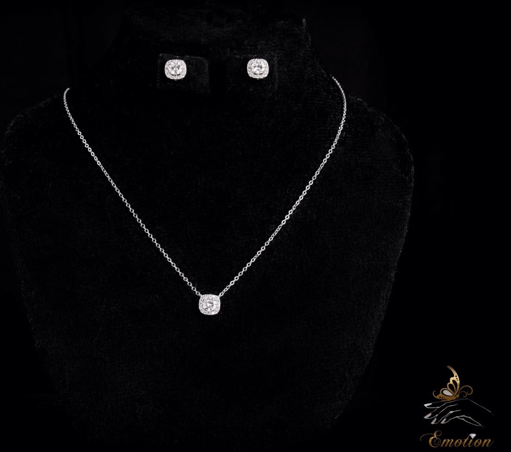طقم مطلي ذهب أبيض عيار 18 ومُطعَّم بفصوص ألماس صناعي سويسري "زركون"