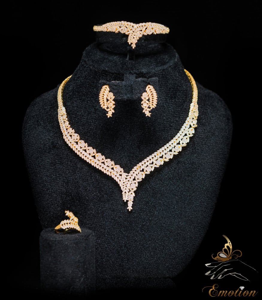 - طقم ايموشن فاخر مطلي ذهب ومُطعَّم بفصوص ألماس صناعي سويسري "زركون"