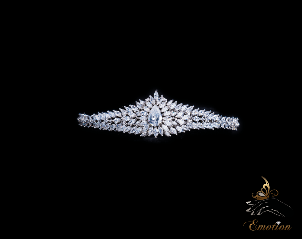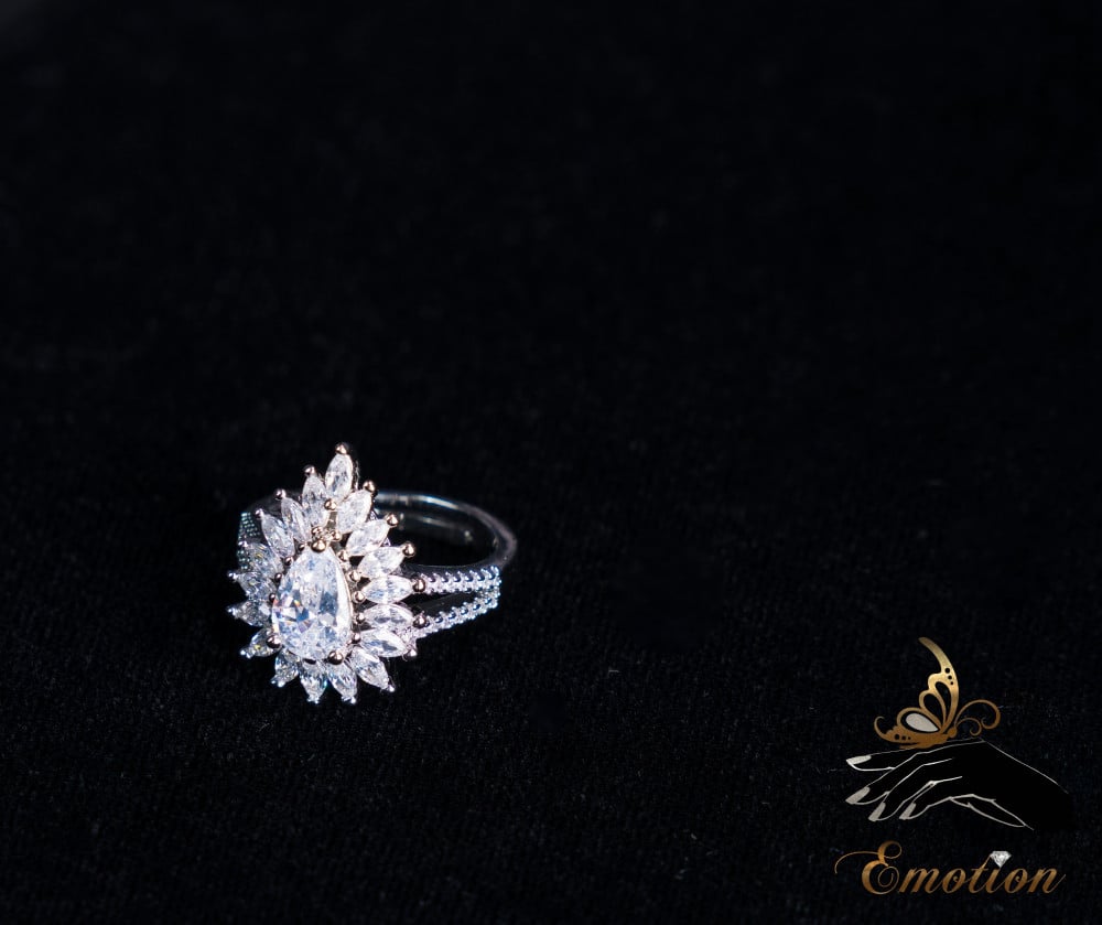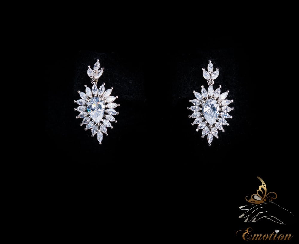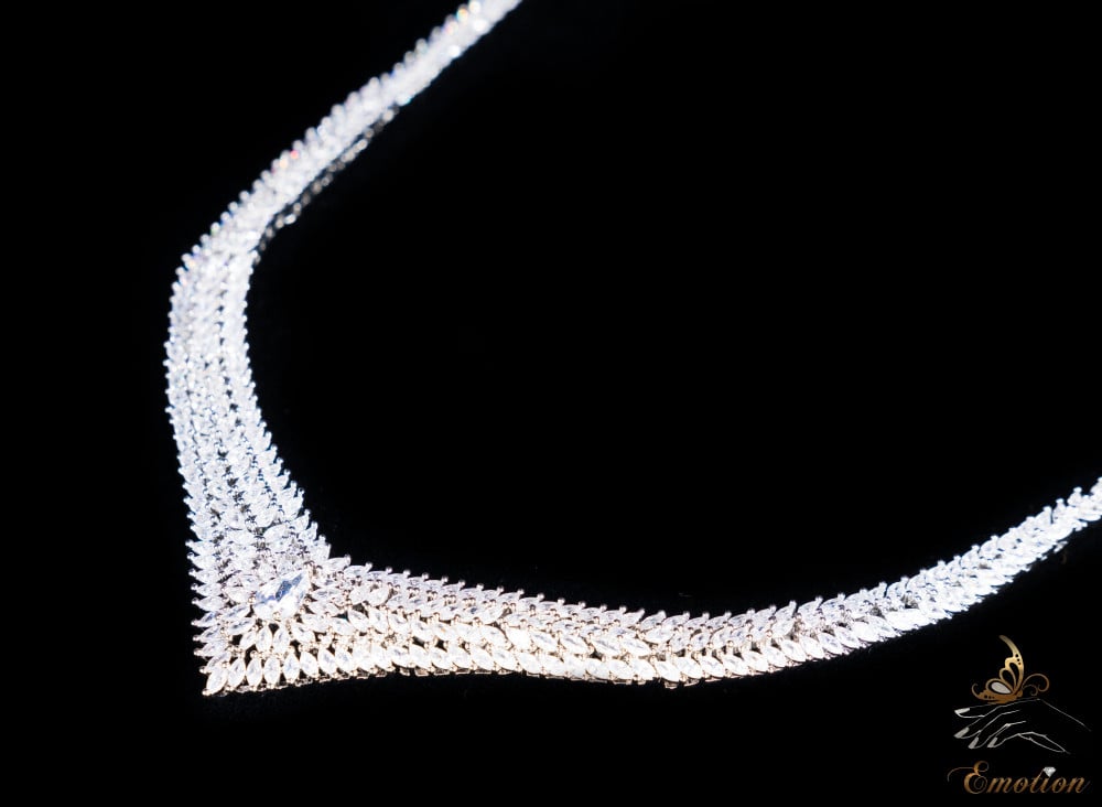 - طقم ايموشن فاخر مطلي ذهب أبيض ومُطعَّم بفصوص ألماس صناعي سويسري "زركون"