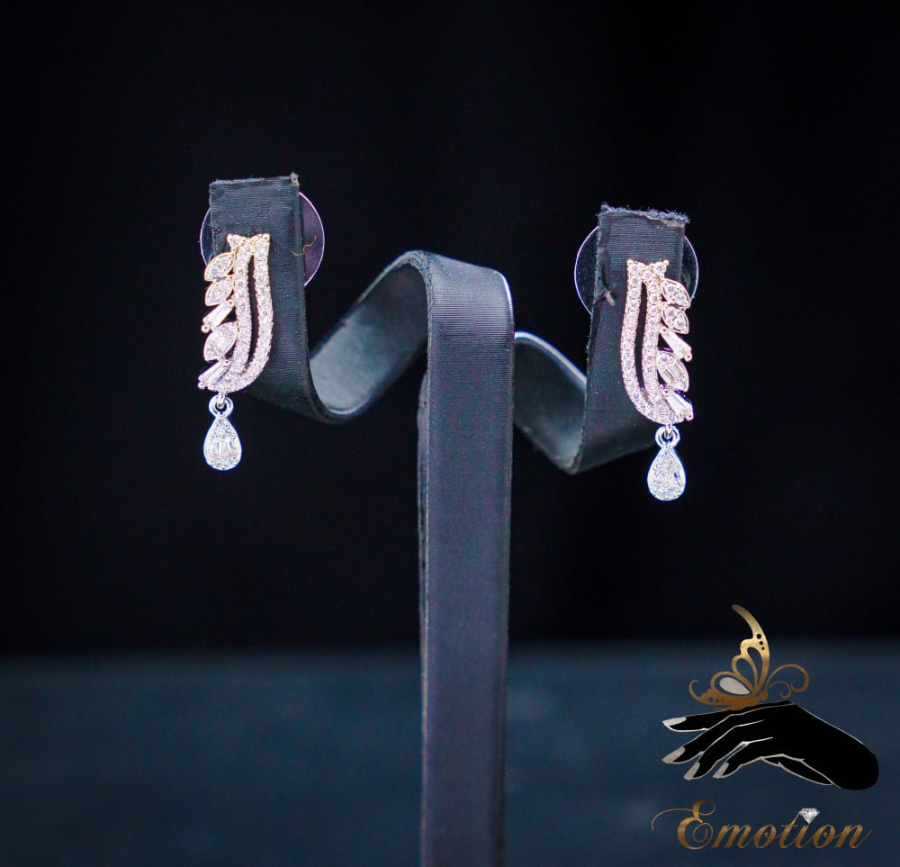 طقم مطلي ذهب أبيض عيار 18 ومُطعَّم بفصوص ألماس صناعي سويسري "زركون"
