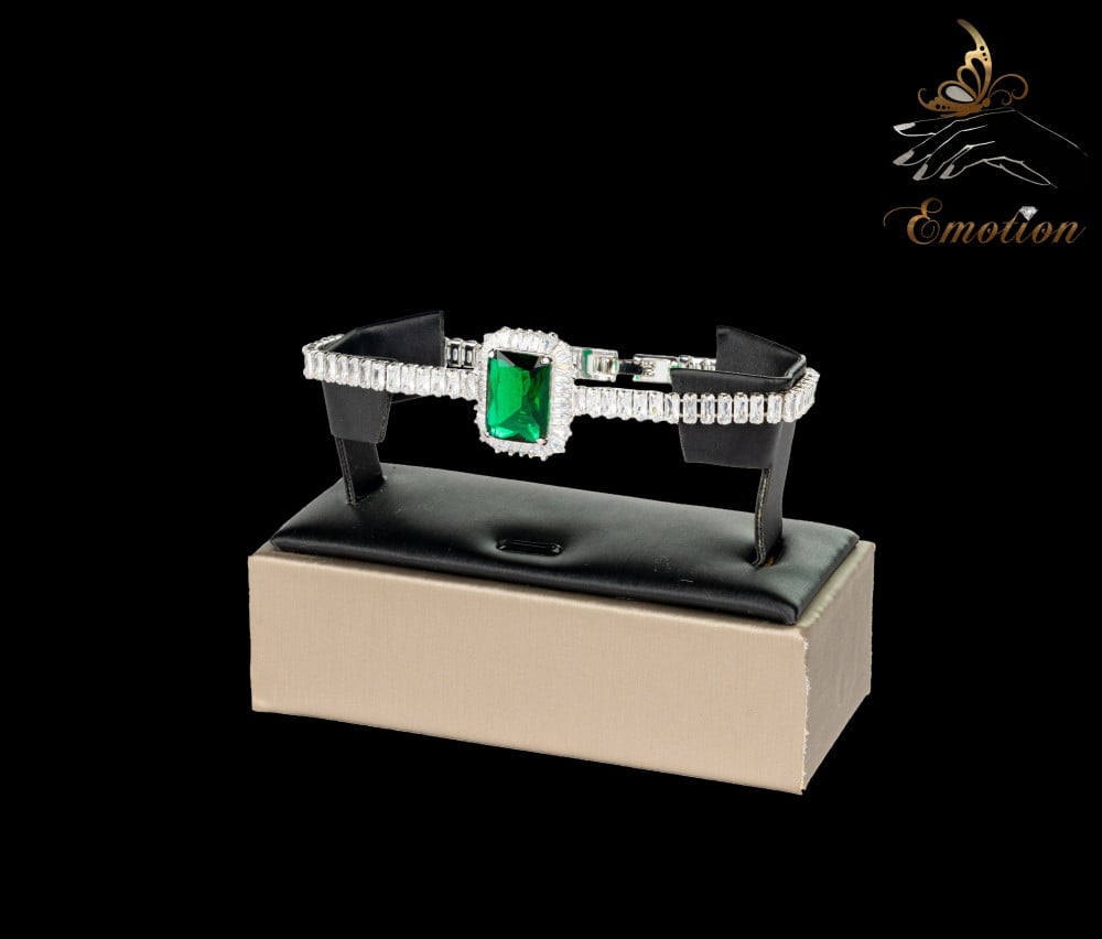 طقم ايموشن فاخر مطلي ذهب أبيض ومُطعَّم بفصوص ألماس صناعي سويسري "زركون"