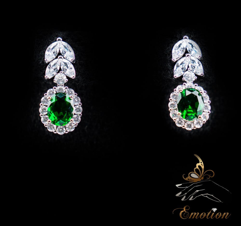طقم فاخر مطلي ذهب أبيض مُطعَّم بفصوص ألماس صناعي سويسري "زركون"