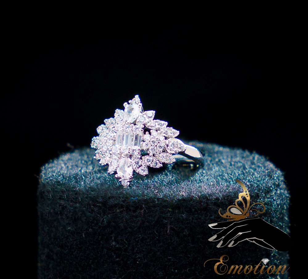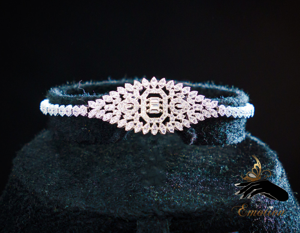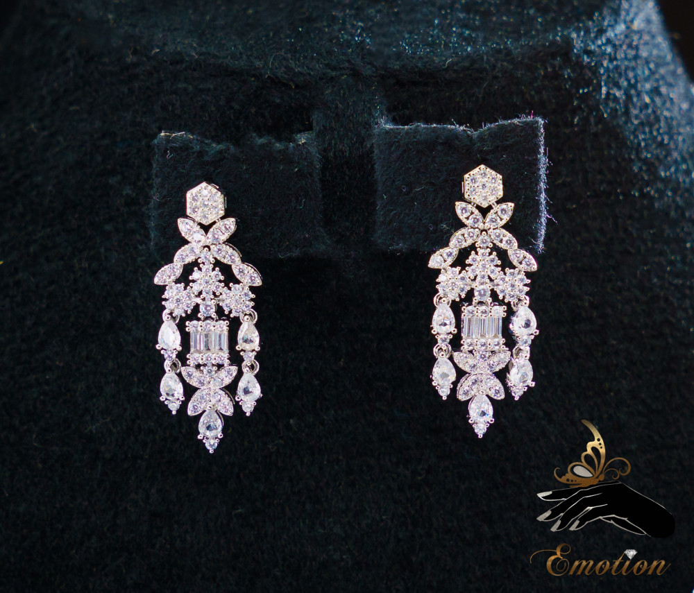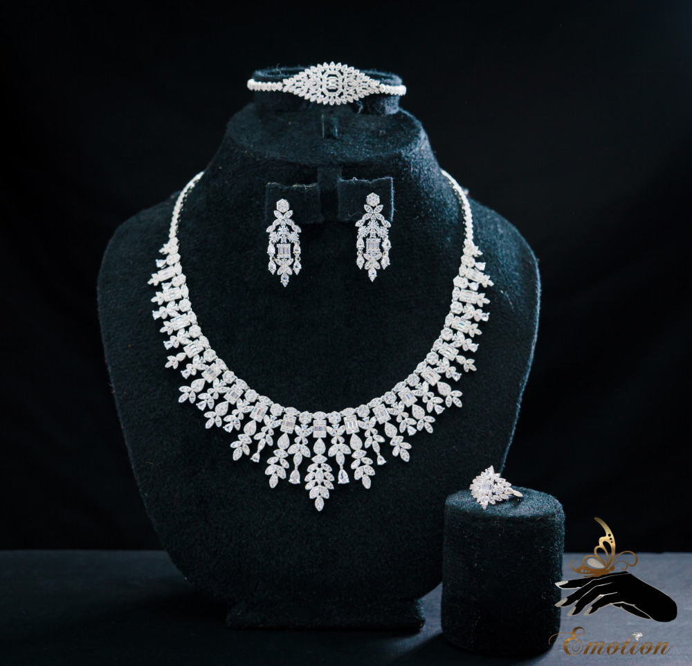 - طقم ايموشن فاخر مطلي ذهب أبيض مُطعَّم بفصوص ألماس صناعي سويسري "زركون"