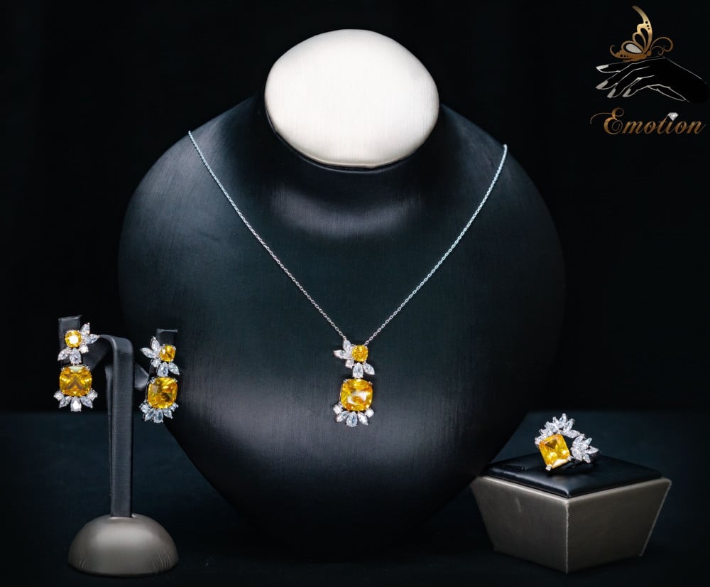 - طقم مطلي ذهب أبيض عيار 18 ومُطعَّم بفصوص ألماس صناعي سويسري "زركون"