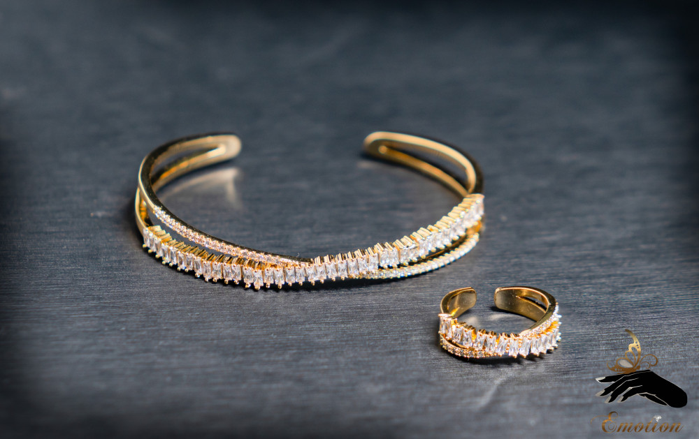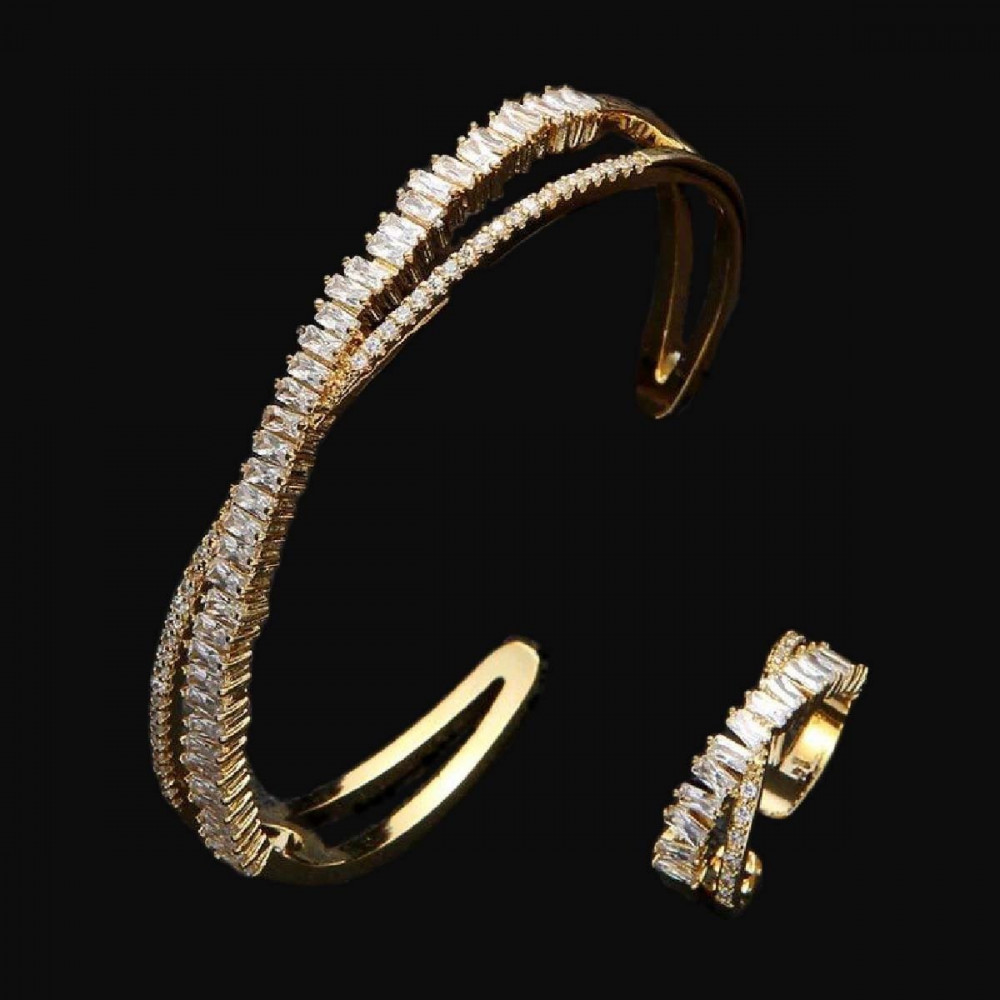 مطلي ذهب ومرصع بالألماس الصناعي السويسري "زركون"