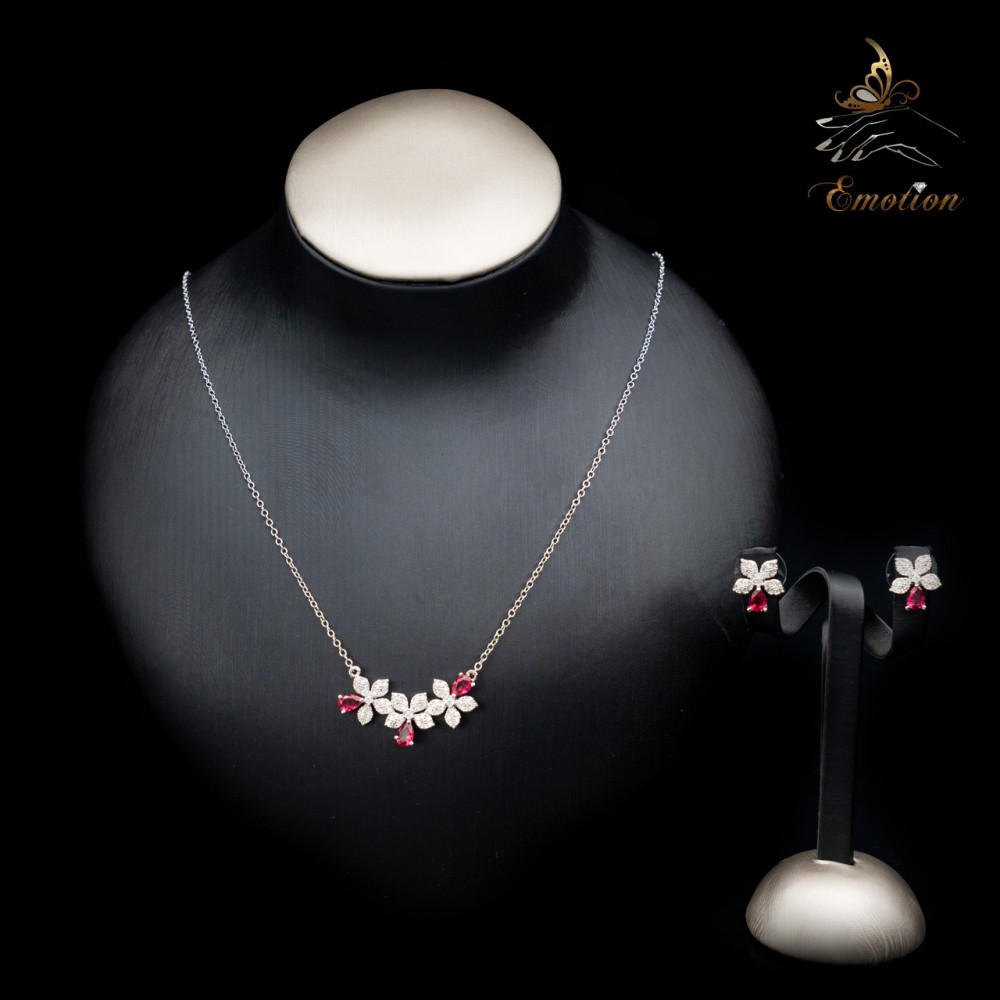 طقم مطلي ذهب أبيض عيار 18 ومُطعَّم بفصوص ألماس صناعي سويسري "زركون"