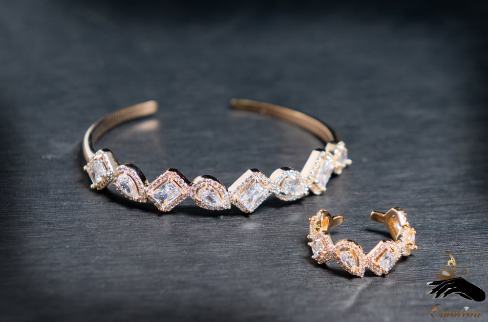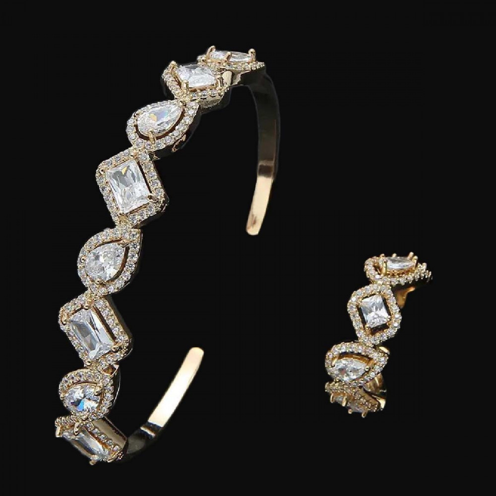 مطلي ذهب ومرصع بالألماس الصناعي السويسري "زركون"