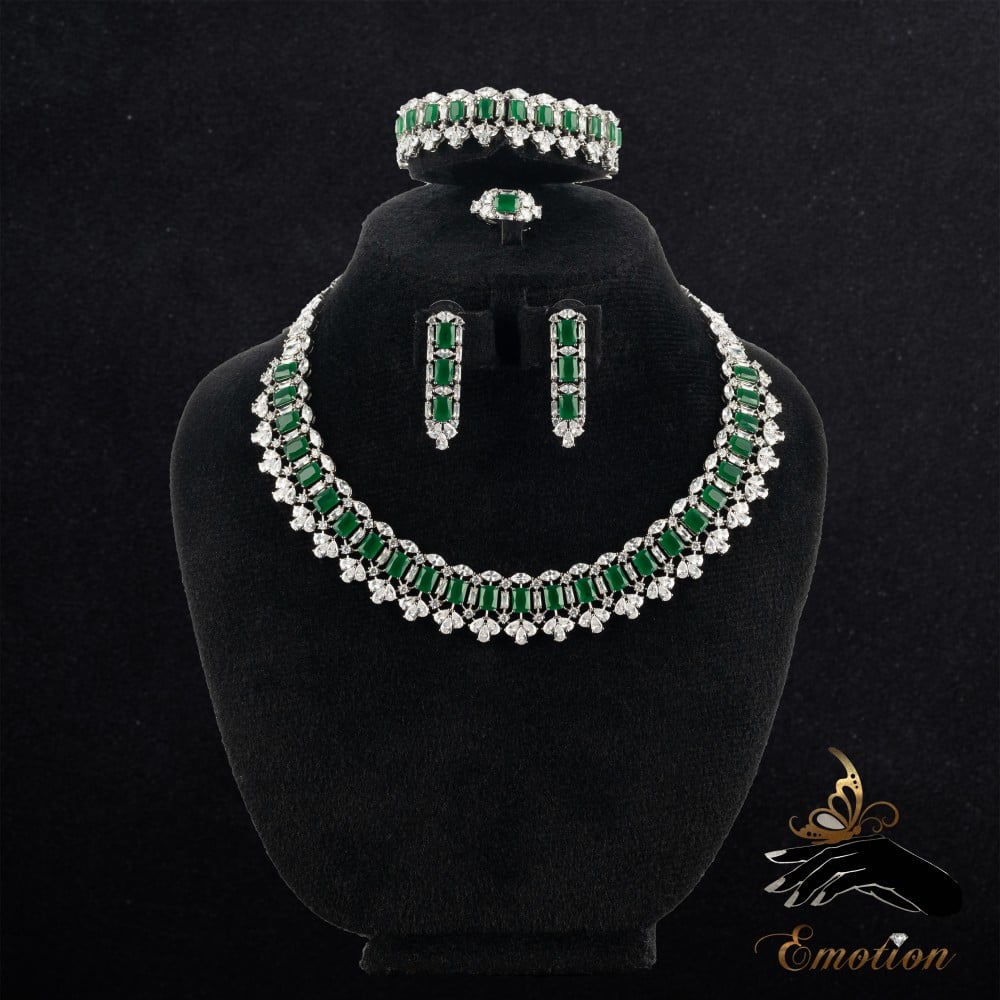 - طقم ايموشن فاخر مطلي ذهب أبيض مُطعَّم بفصوص ألماس صناعي سويسري "زركون"