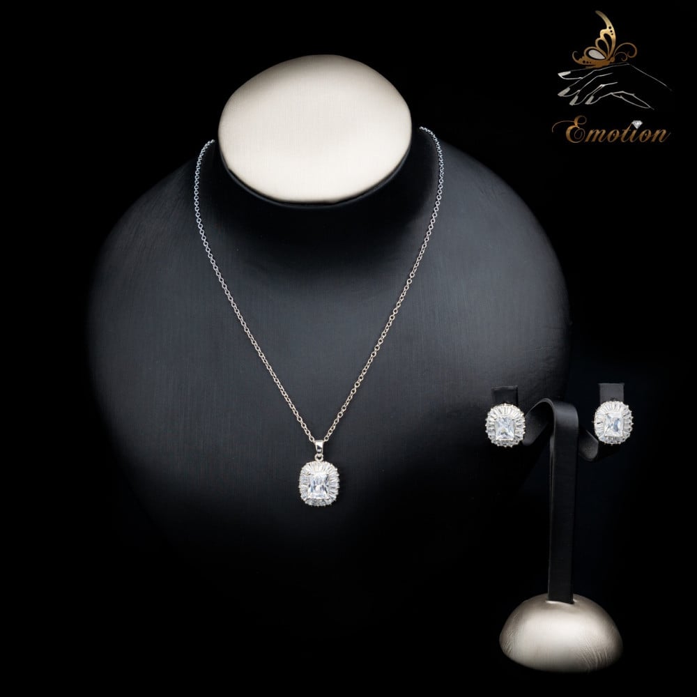 طقم مطلي ذهب أبيض عيار 18 ومُطعَّم بفصوص ألماس صناعي سويسري "زركون"