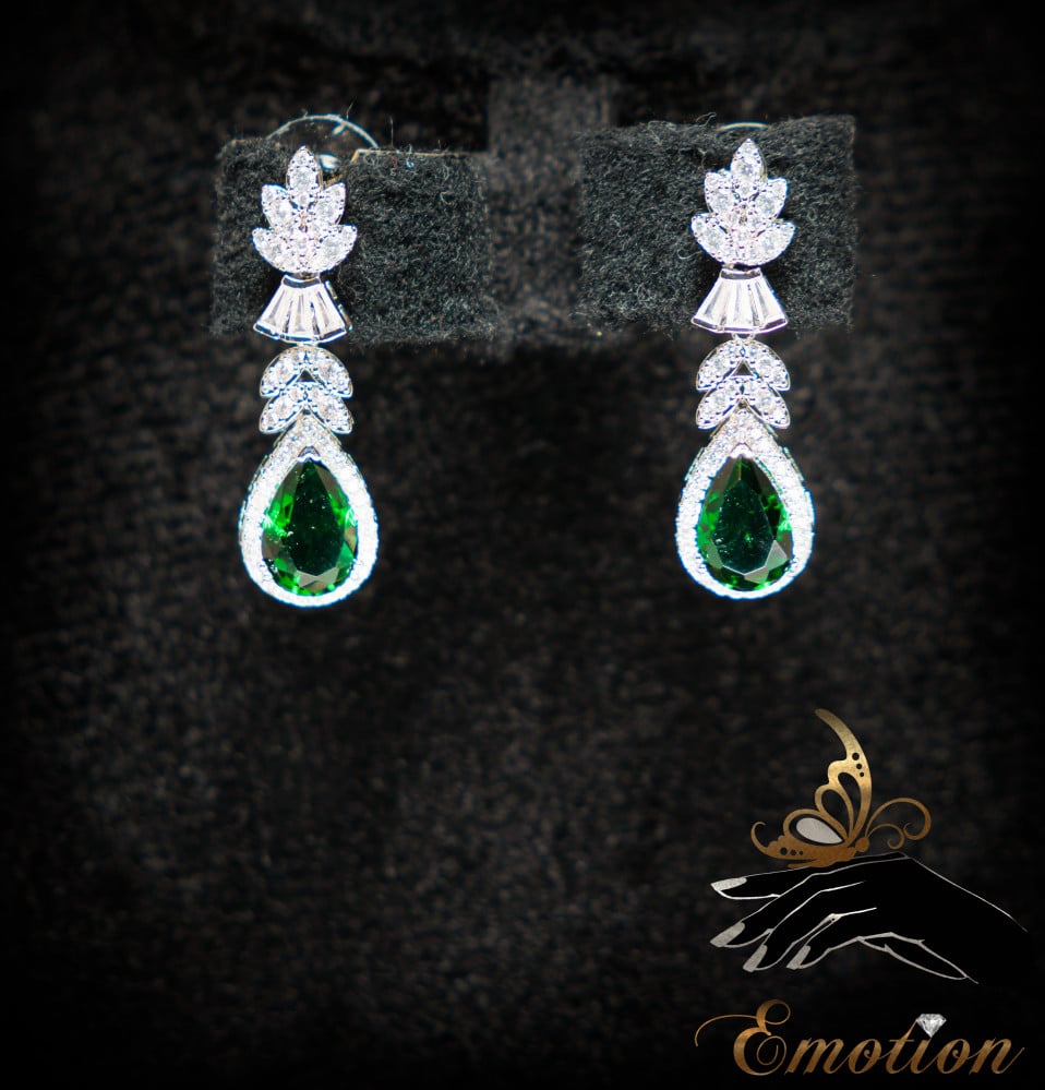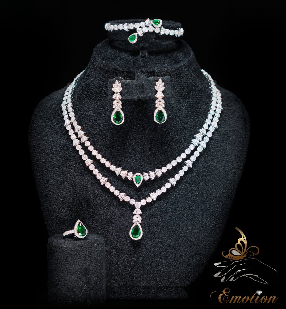 - طقم ايموشن فاخر مطلي ذهب أبيض مُطعَّم بفصوص ألماس صناعي سويسري "زركون"