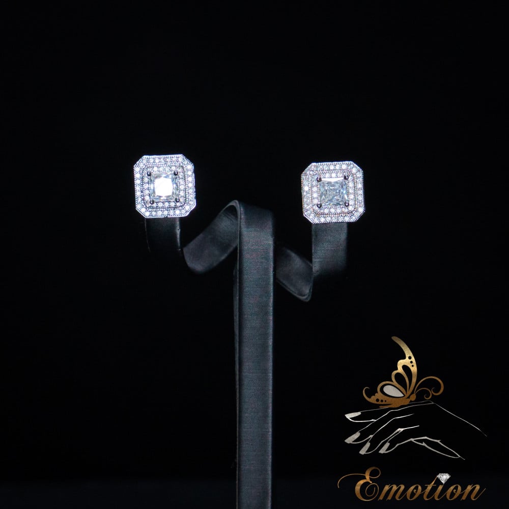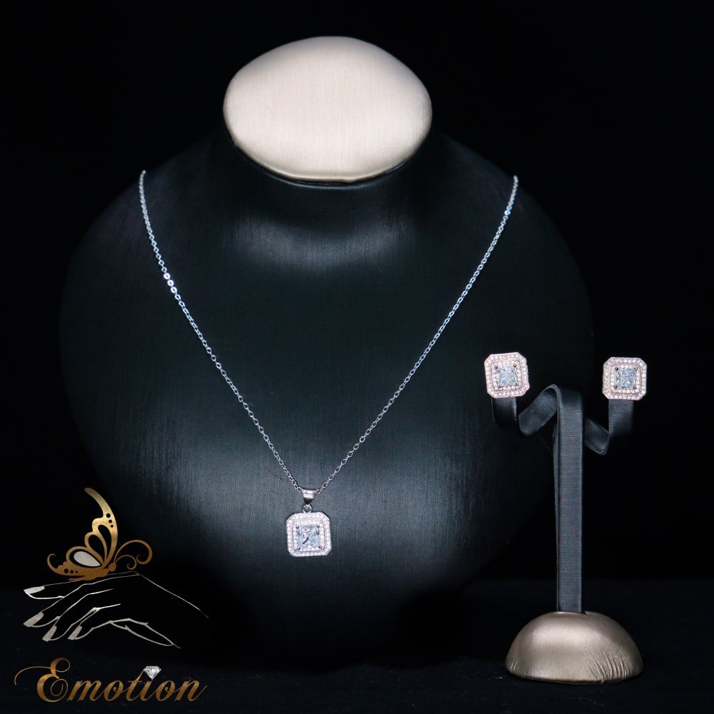 طقم مطلي ذهب أبيض عيار 18 ومُطعَّم بفصوص ألماس صناعي سويسري "زركون"