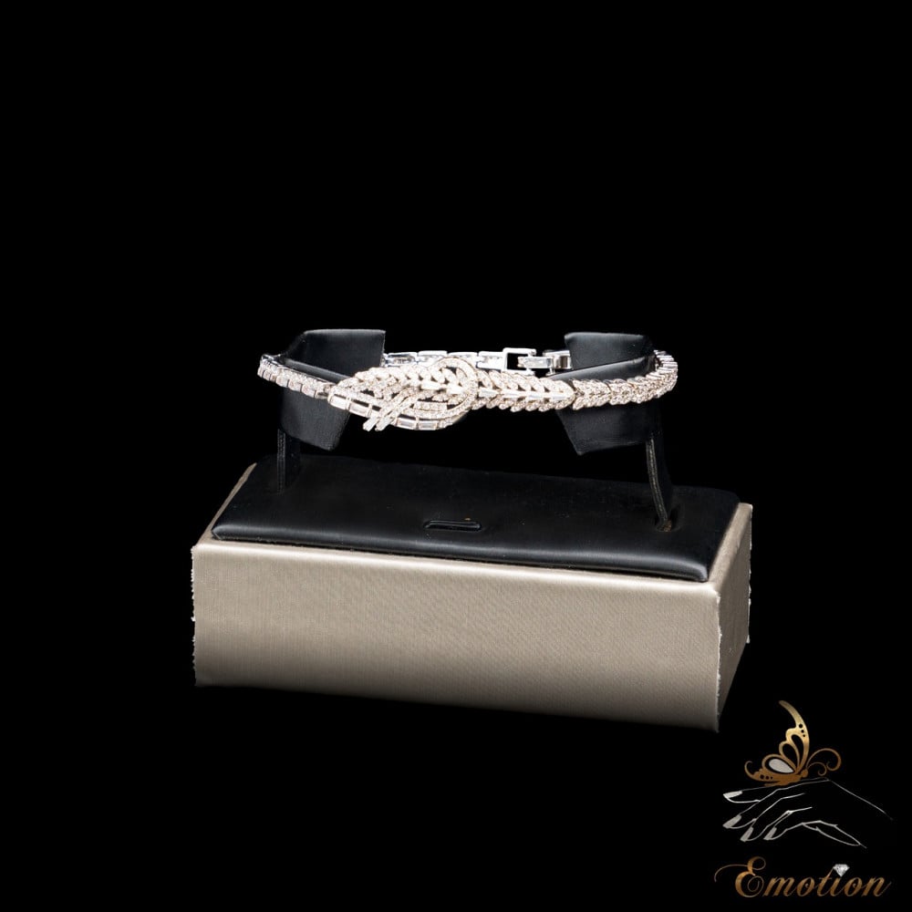 - طقم ايموشن فاخر مطلي ذهب أبيض ومُطعَّم بفصوص ألماس صناعي سويسري "زركون"