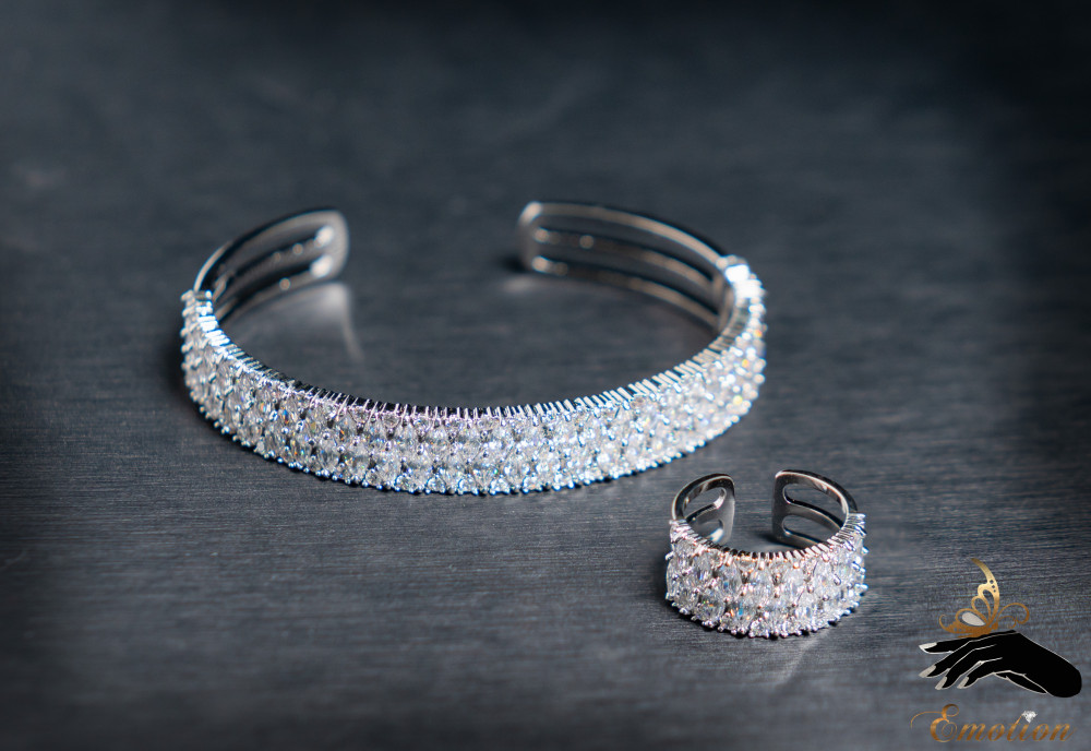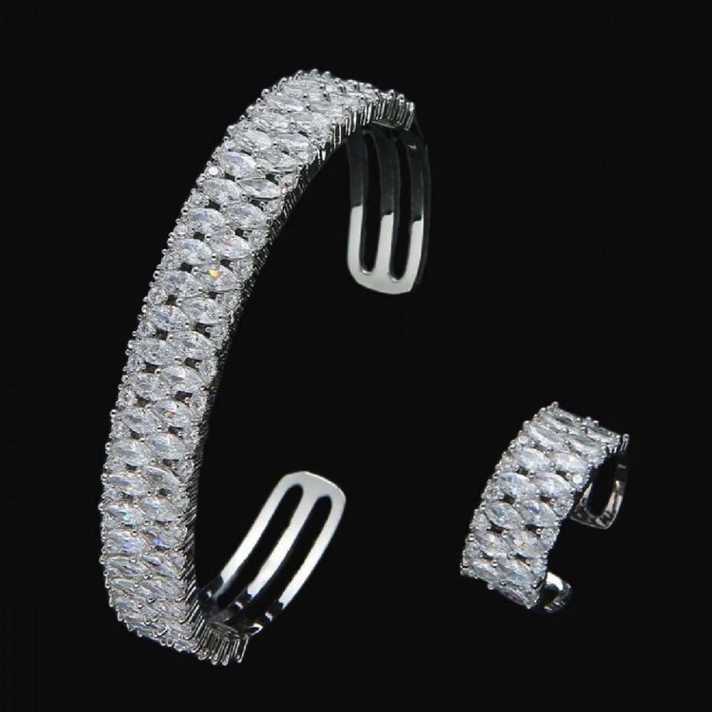 مطلي ذهب أبيض ومرصع بالألماس الصناعي السويسري "زركون"