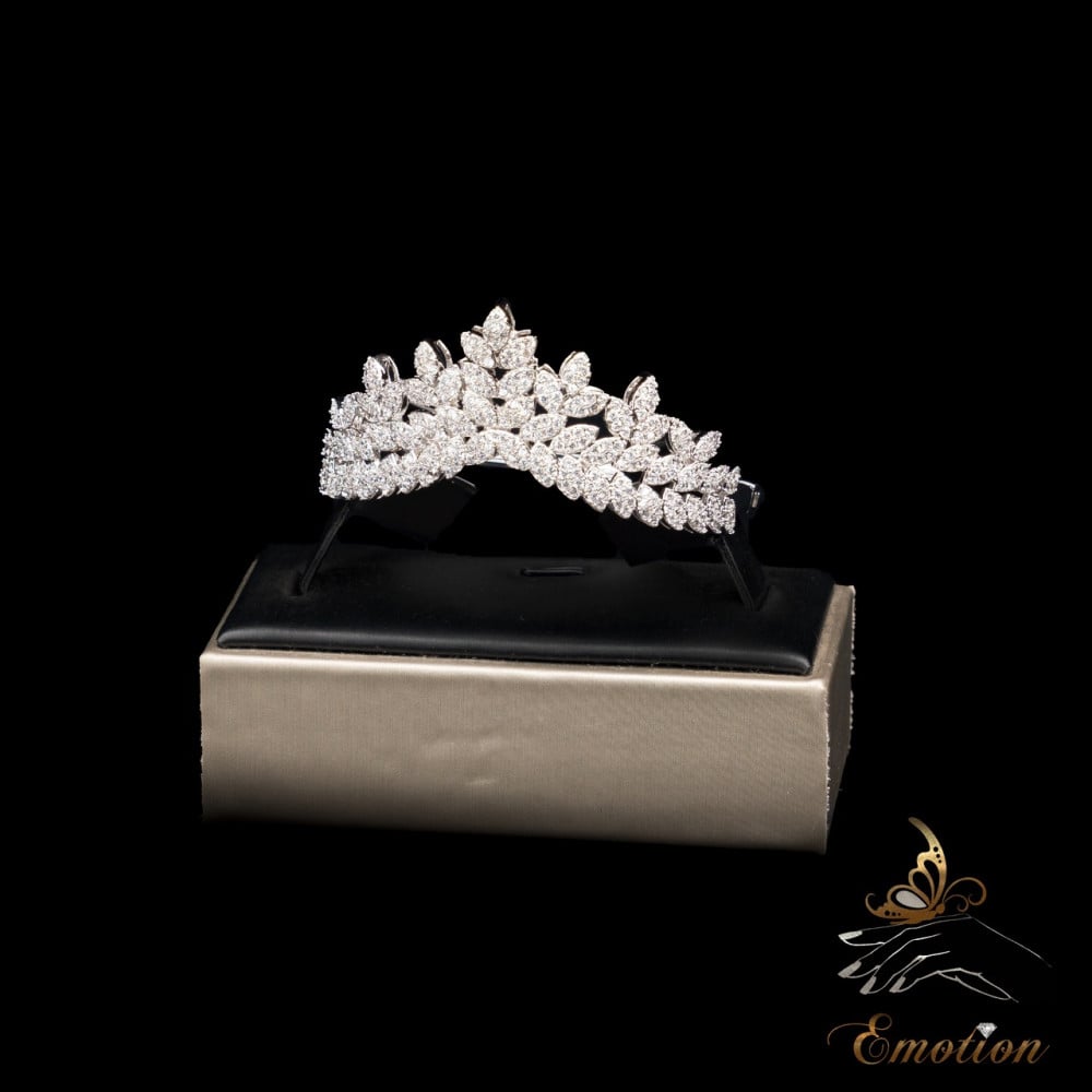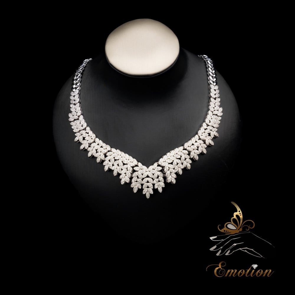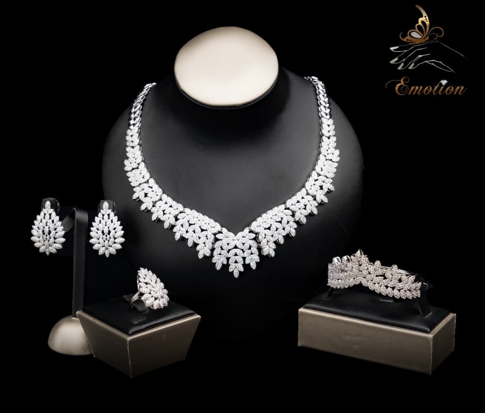 - طقم ايموشن فاخر مطلي ذهب أبيض ومُطعَّم بفصوص ألماس صناعي سويسري "زركون"