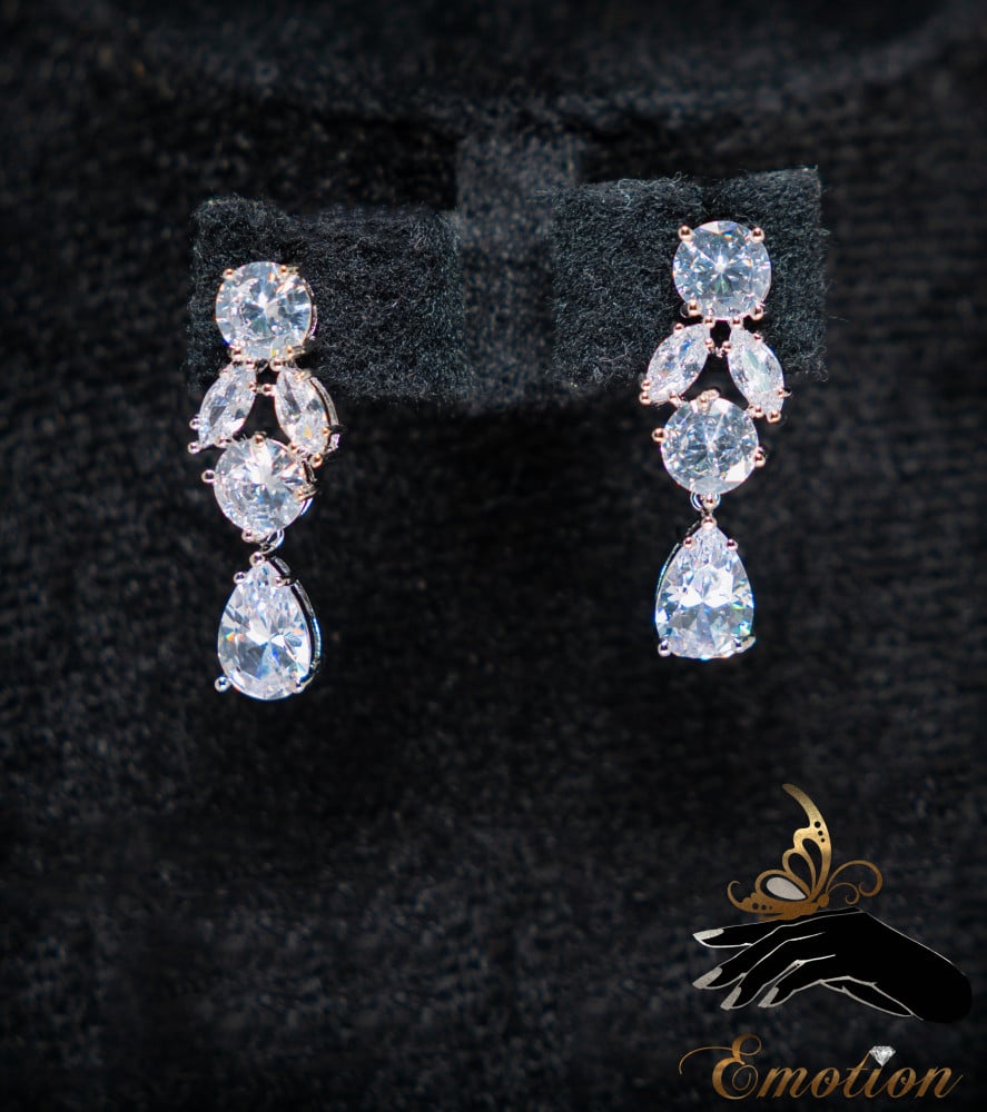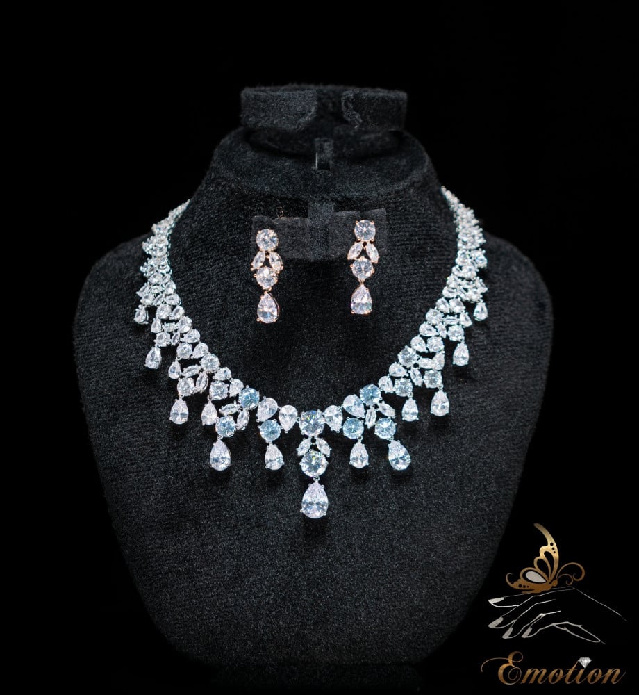 طقم فاخر مطلي ذهب أبيض مُطعَّم بفصوص ألماس صناعي سويسري "زركون"