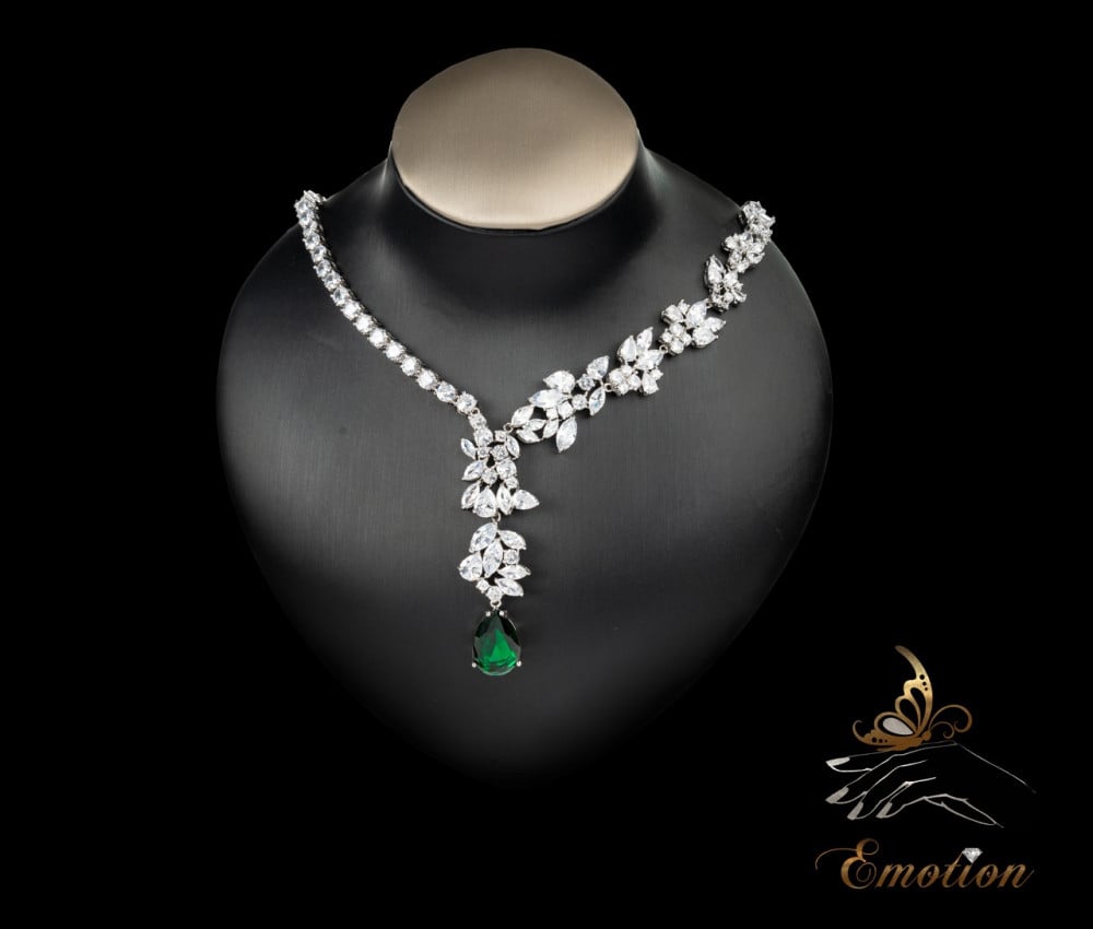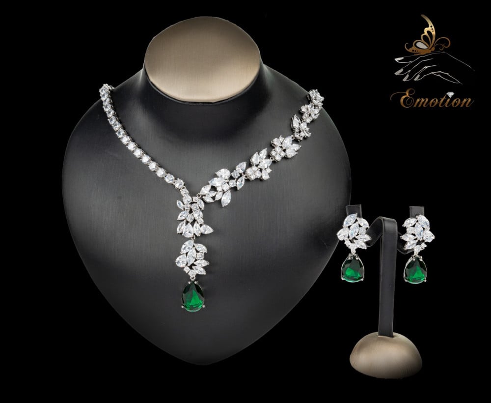 طقم فاخر مطلي ذهب أبيض مُطعَّم بفصوص ألماس صناعي سويسري "زركون"