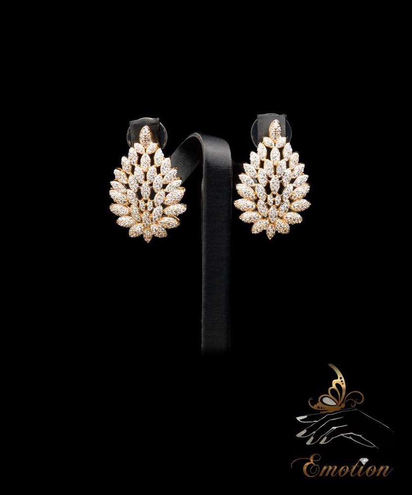 - طقم ايموشن فاخر مطلي ذهب ومُطعَّم بفصوص ألماس صناعي سويسري "زركون"