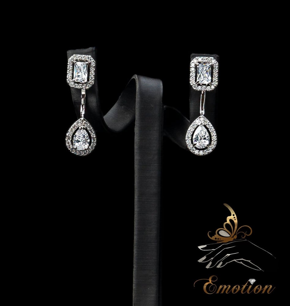 طقم مطلي ذهب أبيض عيار 18 ومُطعَّم بفصوص ألماس صناعي سويسري "زركون"