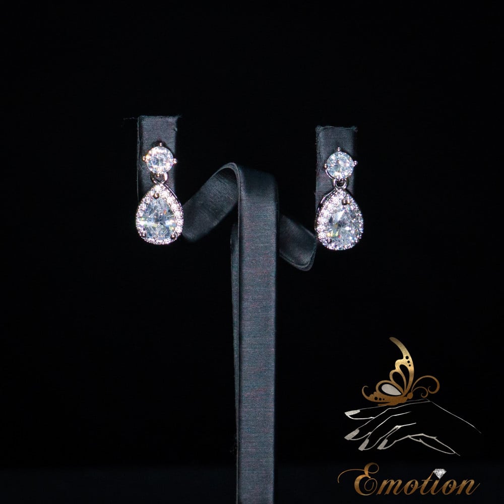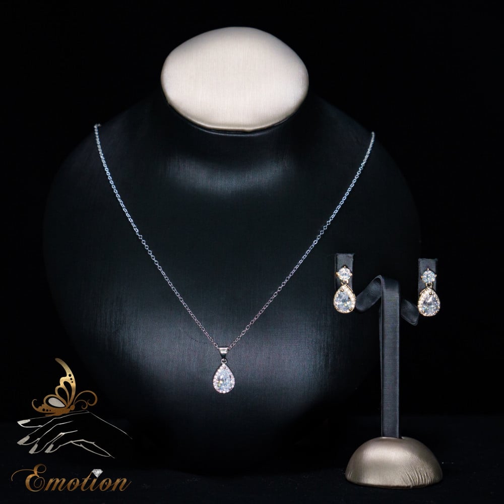 طقم مطلي ذهب أبيض عيار 18 ومُطعَّم بفصوص ألماس صناعي سويسري "زركون"