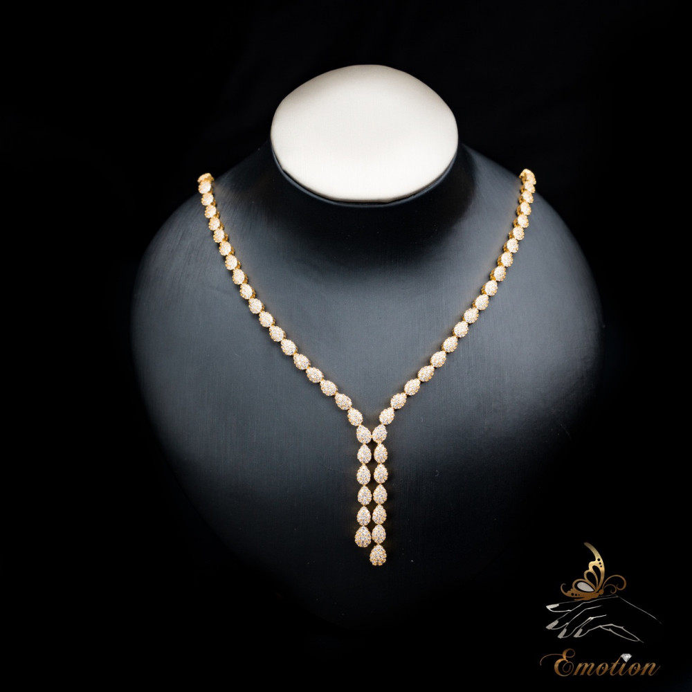 طقم ايموشن فاخر مطلي ذهب ومُطعَّم بفصوص ألماس صناعي سويسري "زركون"