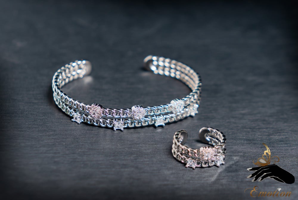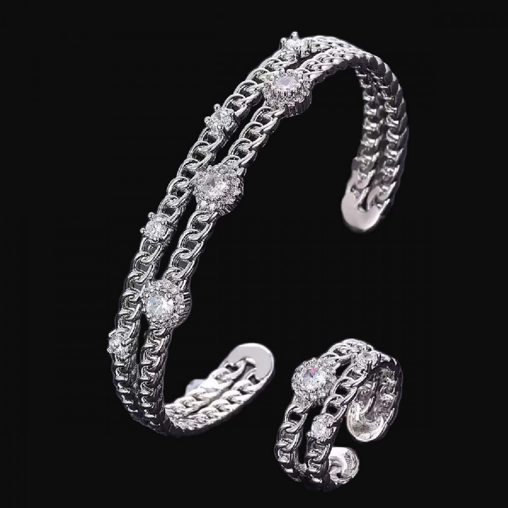 مطلي ذهب أبيض ومرصع بالألماس الصناعي السويسري "زركون"