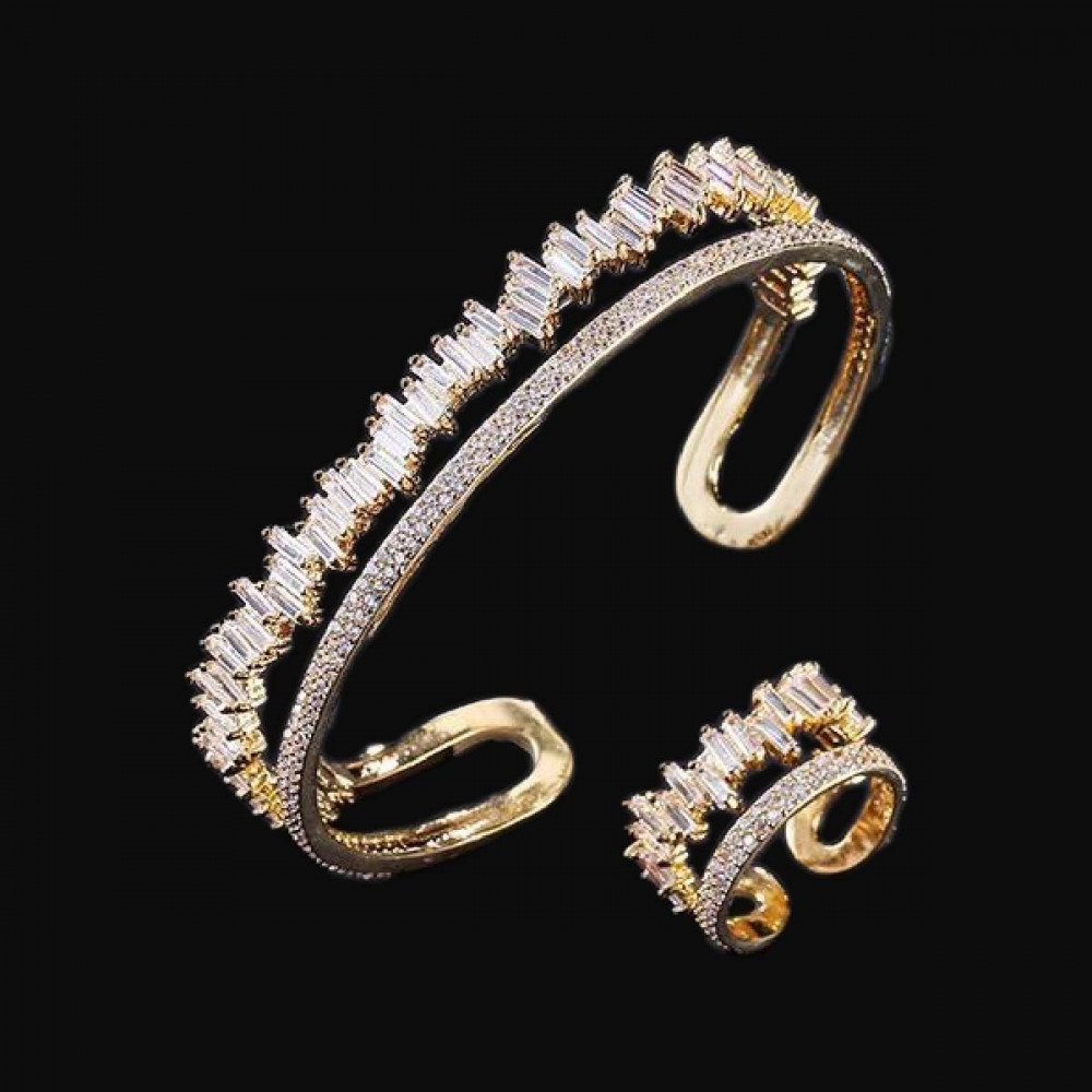 مطلي ذهب ومرصع بالألماس الصناعي السويسري "زركون"