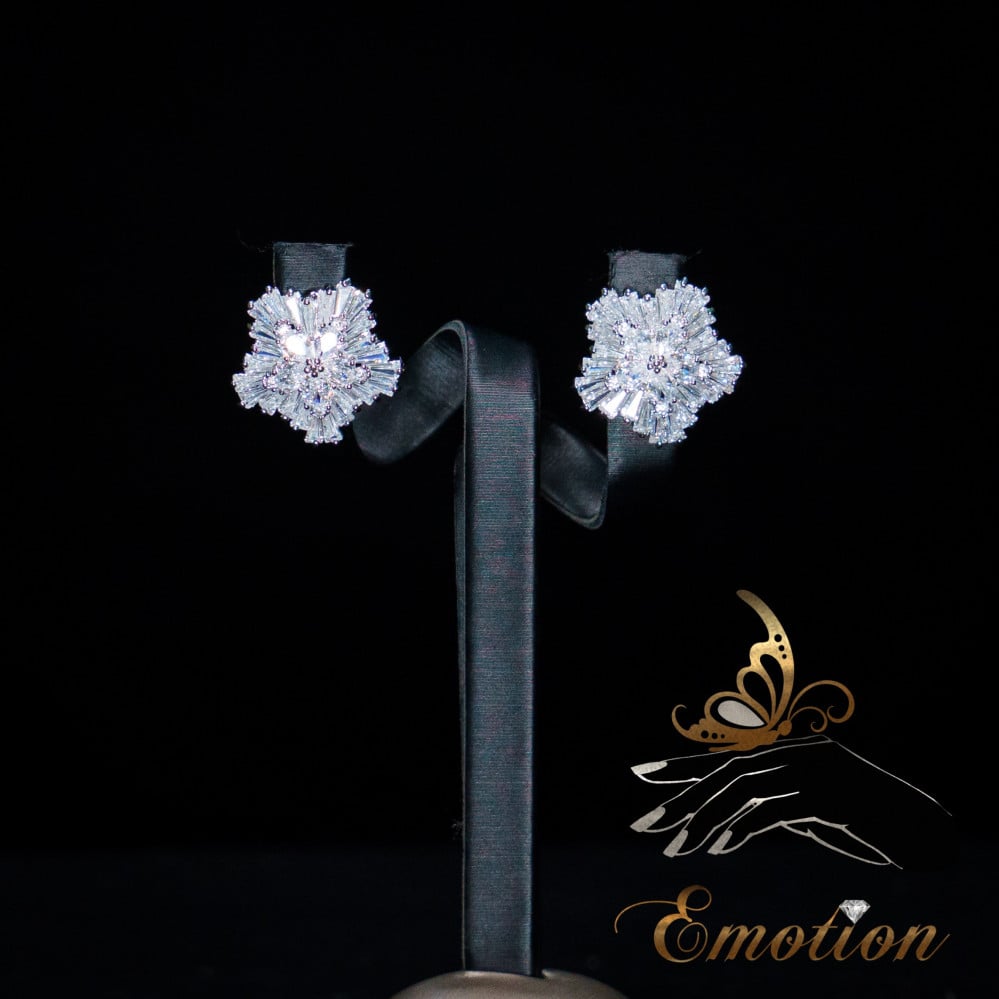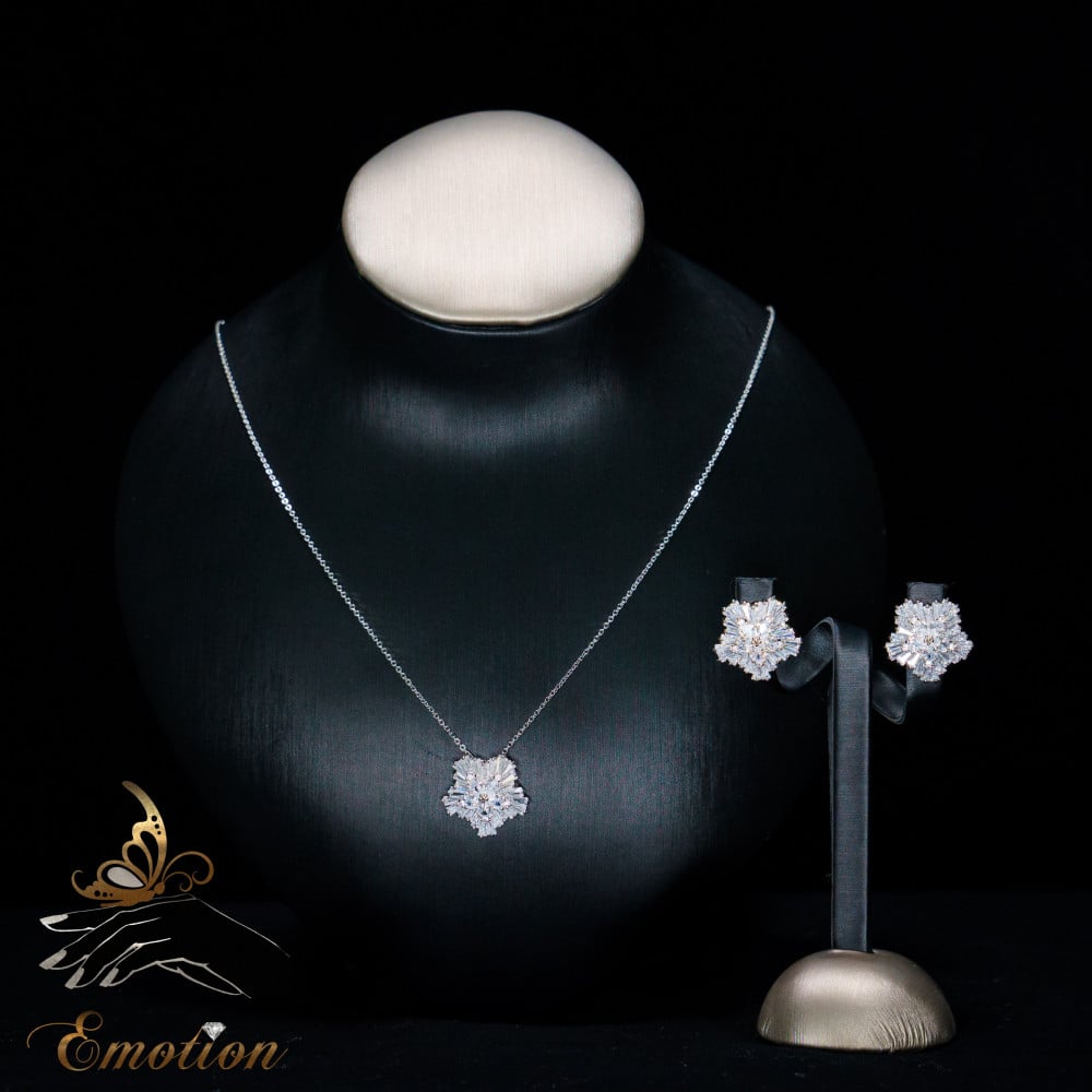 طقم مطلي ذهب أبيض عيار 18 ومُطعَّم بفصوص ألماس صناعي سويسري "زركون"