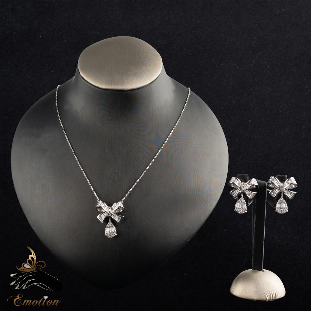 طقم مطلي ذهب أبيض عيار 18 ومُطعَّم بفصوص ألماس صناعي سويسري "زركون"