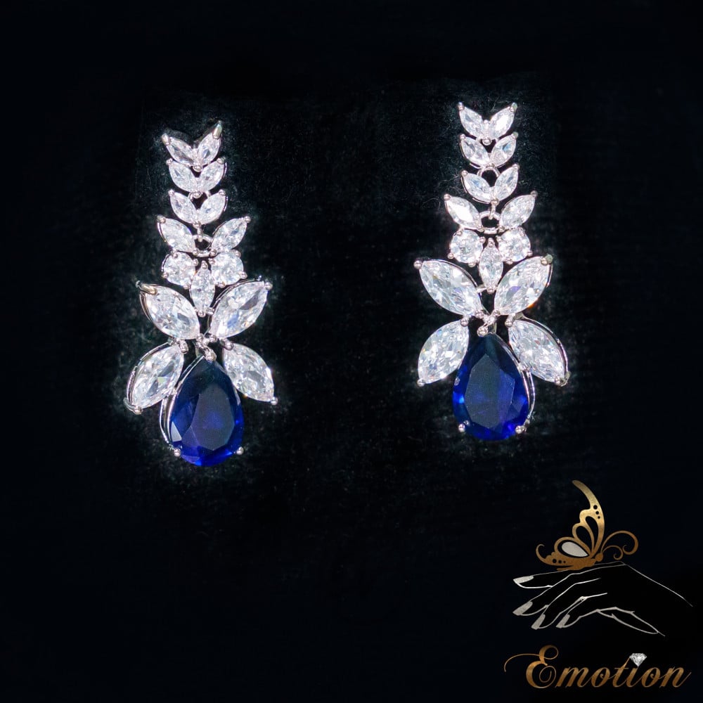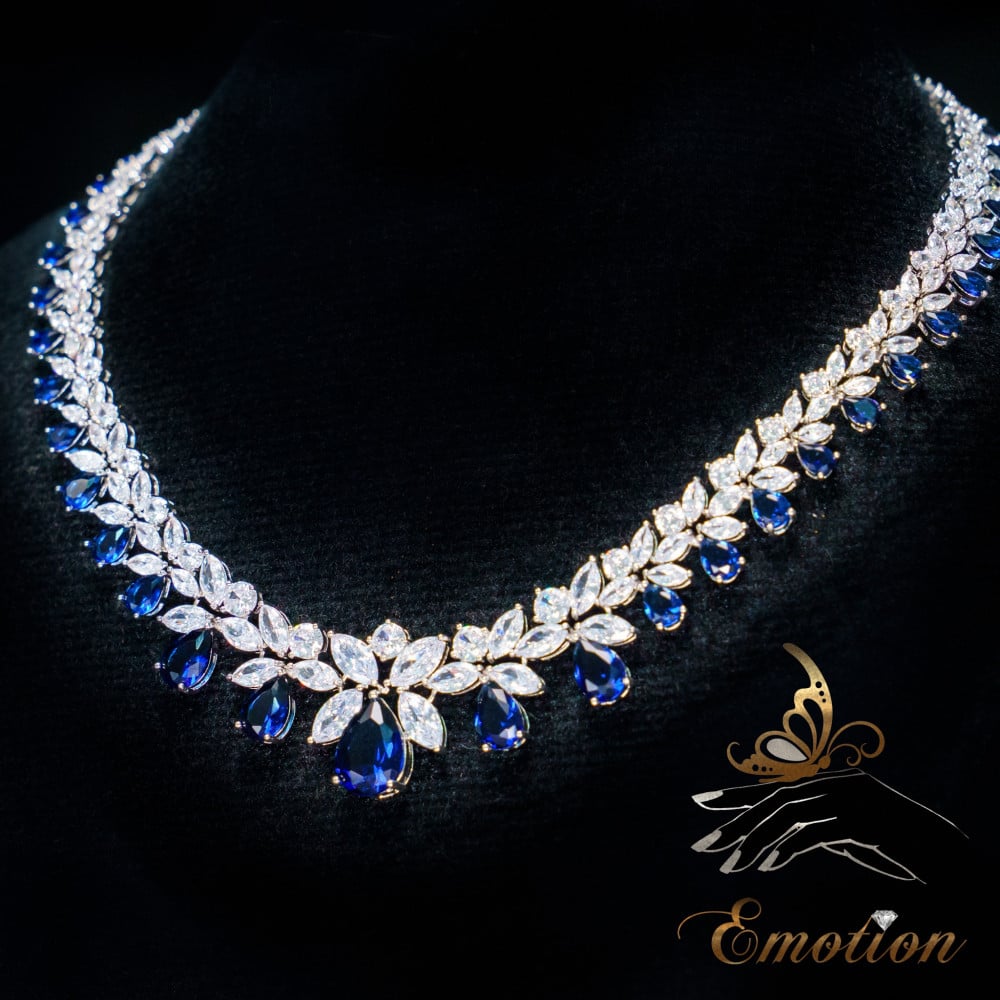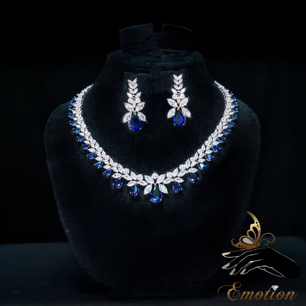 طقم فاخر مطلي ذهب أبيض عيار 18 ومُطعَّم بفصوص ألماس صناعي سويسري "زركون"